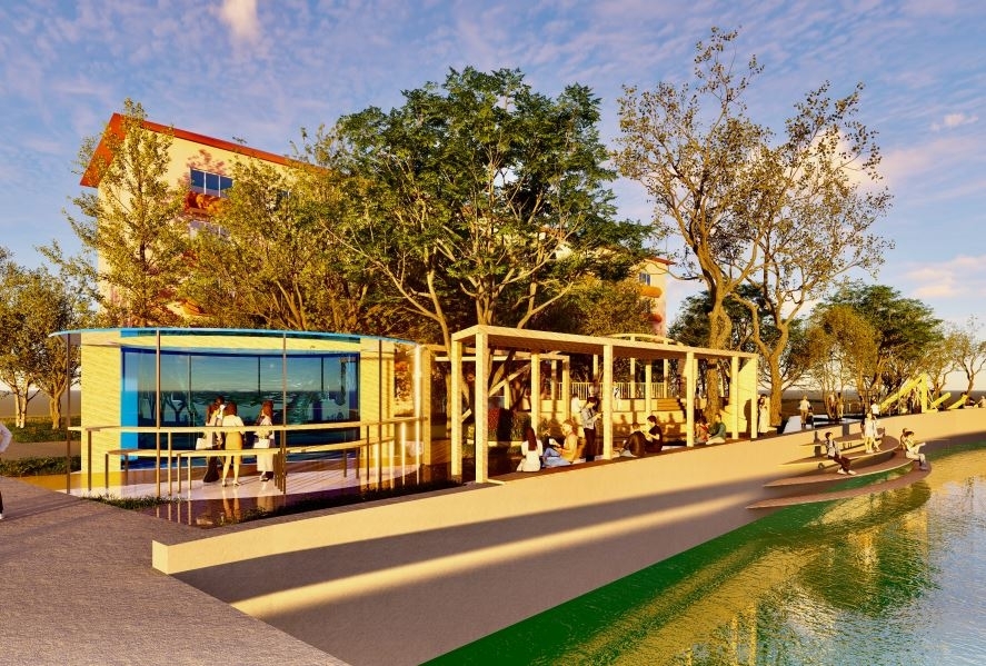 Долбоордук жана композициялык схеманын долбооруна ылайык, пландалган аянтчага амфитеатр, коомдук арт, воркаут зонасы, балдар аянтчасы, ошондой эле негизги жөө жүрүү аянтчасы жана дарыяга түшүүнү уюштуруу каралат.