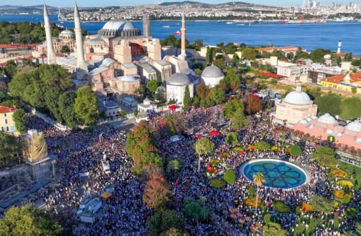 Бул демонстрацияга өкмөттүк эмес уюмдар жана коомчулуктун көптөгөн мүчөлөрү катышып, тарыхый Айя-София мечитине карай жүрүш менен уланды.