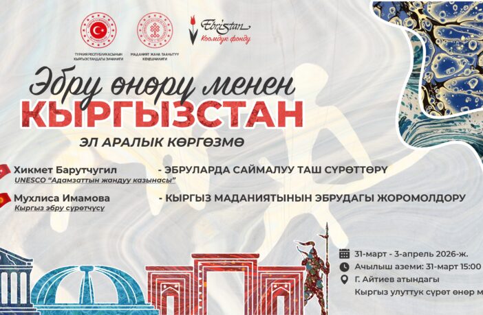 Түркия Республикасынын Кыргызстандагы Элчилигинин колдоосу менен, «Эбристан» коомдук фонду тарабынан уюштурулган эбру өнөрүнө арналган иш-чара 2026-жылдын 31-мартынан 3-апрелине чейин Гапар Айтиев атындагы кыргыз улуттук сүрөт өнөр музейинде өтөт.