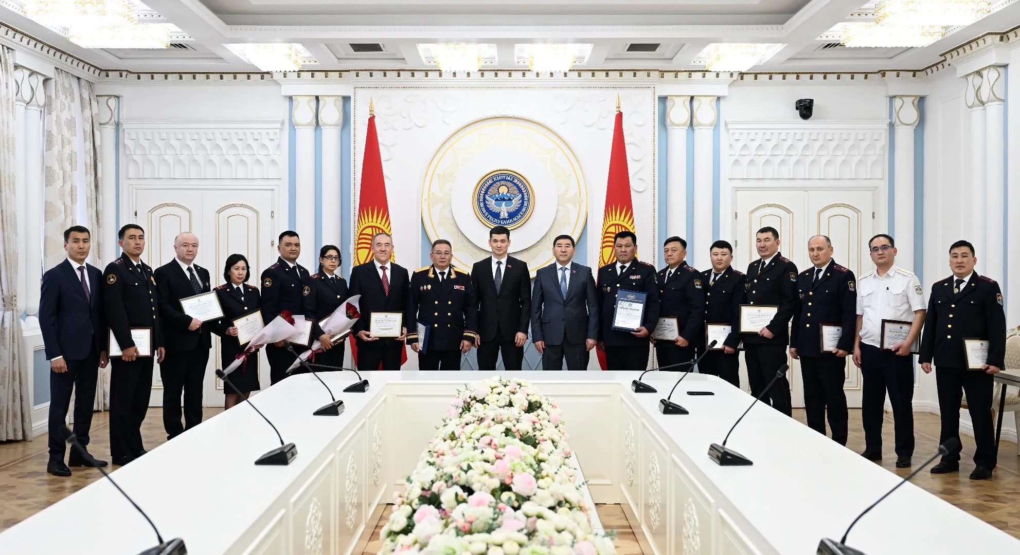 Төрага мамлекеттеги мыйзамдуулукту камсыз кылууда, жарандардын укуктарын жана эркиндиктерин коргоодо, ошондой эле адилеттикти орнотууда ички иштер органдарында, айрыкча тергөө кызматында эмгектенген инсандардын салымы чоң экенин белгиледи. Андан соң кызматкерлерге Жогорку Кеңештин атынан Ардак грамота жана ыраазычылык каттарын тапшырып, мындан аркы иштерине ийгиликтерди каалады.