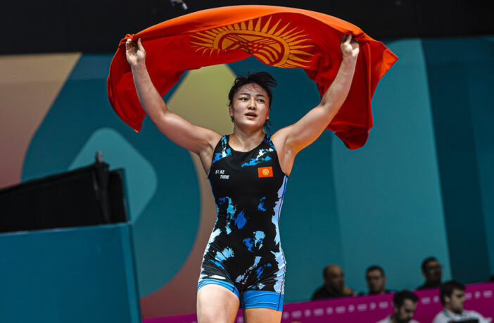 Бишкекте өтүп жаткан спорттук күрөш боюнча Азия чемпионатында Кыргызстандын кыз-келиндер күрөшү боюнча курама командасынын мүчөсү Мээрим Жуманазарова финалдык беттеште алтын медаль жеңди. Бул тууралуу Дене тарбия жана спорт агенттигинен билдиришти.